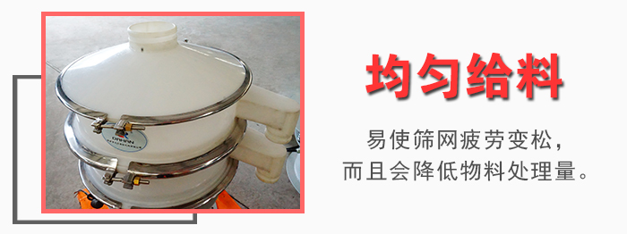 塑料防腐蝕旋振篩采用YZUL立式振動(dòng)電機(jī)作為激振源,通過振動(dòng)電機(jī)上下兩端的偏心重錘將旋轉(zhuǎn)運(yùn)動(dòng)轉(zhuǎn)變?yōu)樗?、垂直、傾斜的三次元運(yùn)動(dòng),并傳遞到旋振篩的篩面上;物料通過入料口進(jìn)入設(shè)備內(nèi),根據(jù)不同物料篩分要求,物料經(jīng)過1-5層采用不同目數(shù)的金屬編織篩網(wǎng)的篩分層,在這個(gè)過程中,位于各層的篩網(wǎng)下的清網(wǎng)裝置(彈跳球)通過頻率振動(dòng)不斷撞擊不銹鋼篩網(wǎng),使篩網(wǎng)上層物料能夠順暢的透網(wǎng)篩分,并有效解決了物料堵網(wǎng)問題出現(xiàn),不同目數(shù)的物料通過各層對(duì)應(yīng)目數(shù)的篩網(wǎng)后在各層的出料口排出,終實(shí)現(xiàn)篩選除雜或過濾分級(jí)的目的。
