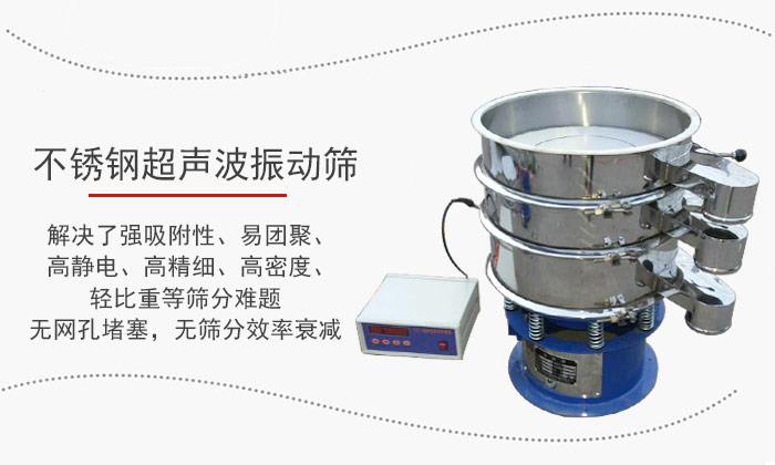 不銹鋼超聲波振動篩是將超聲波控制器與振動篩有機(jī)結(jié)合在一起,在篩網(wǎng)上面疊加一個(gè)高頻率低振幅的超聲振動波,超微細(xì)粉體接受巨大的超聲加速度,使篩面上的物料始終保持懸浮狀態(tài),從而抑制粘附、摩擦、平降、楔入等堵網(wǎng)因素,從而解決了強(qiáng)吸附性、易團(tuán)聚、高靜電、高精細(xì)、高密度、輕比重等篩分難題,使超微細(xì)粉篩分不再成為難事,特別適合高品質(zhì)、精細(xì)粉體的用戶使用。大于500目篩分,無網(wǎng)孔堵塞,無篩分效率衰減。篩分精度可提高1—70%,產(chǎn)量可提高0.5-10倍。