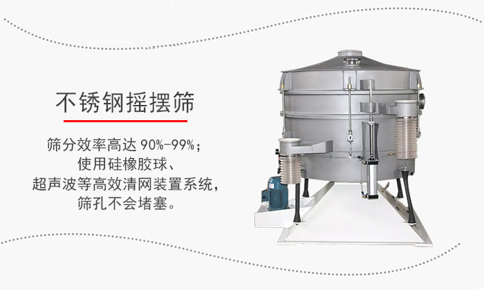 不銹鋼搖擺篩是目前有效的模擬了人工篩分運(yùn)動的有效原理,密閉除塵,操作安全;加速度比振動篩低4-5倍,篩分零件壽命提高而維護(hù)減少;噪音低<75分貝。特別適合難以處理的物料。高達(dá)5倍的單位面積產(chǎn)出;精確到6級分離,篩分效率高達(dá)90%-99%;使用硅橡膠球、超聲波等高效清網(wǎng)裝置系統(tǒng),篩孔不會堵塞。