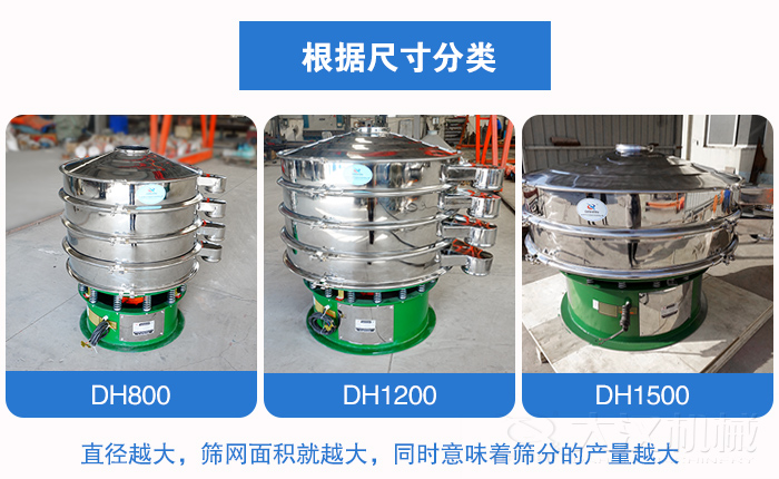 選擇與自己產(chǎn)量適配的旋振篩十分重要,合適大小的旋振篩能夠?yàn)樯a(chǎn)提供更高的效率。目前市場上的旋振篩型號眾多,也比較齊全,常見直徑尺寸的有600mm,800mm,1000mm,1200mm,1500mm,1800mm和2000mm不等。