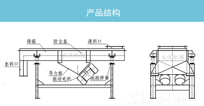 本篩機(jī)主要由篩箱、篩框、篩網(wǎng)、振動(dòng)電機(jī)、電機(jī)臺(tái)座、減振彈簧、支架等組成。