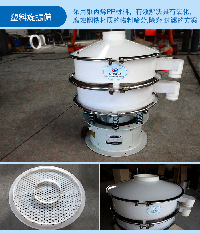 塑料篩粉機是采用聚丙烯PP材料,通過特殊加工工藝制作,用于滿足所生產(chǎn)物料有酸堿性、腐蝕性物料的篩分作業(yè),在全國使用范圍內(nèi)又稱為聚丙烯塑料篩粉機,pp塑料篩粉機,塑料化工篩粉機等,是目前有效解決具有氧化,腐蝕鋼鐵材質(zhì)的物料篩分,除雜,過濾的方案,并且確保了物料在篩分過程中不會變質(zhì)等。